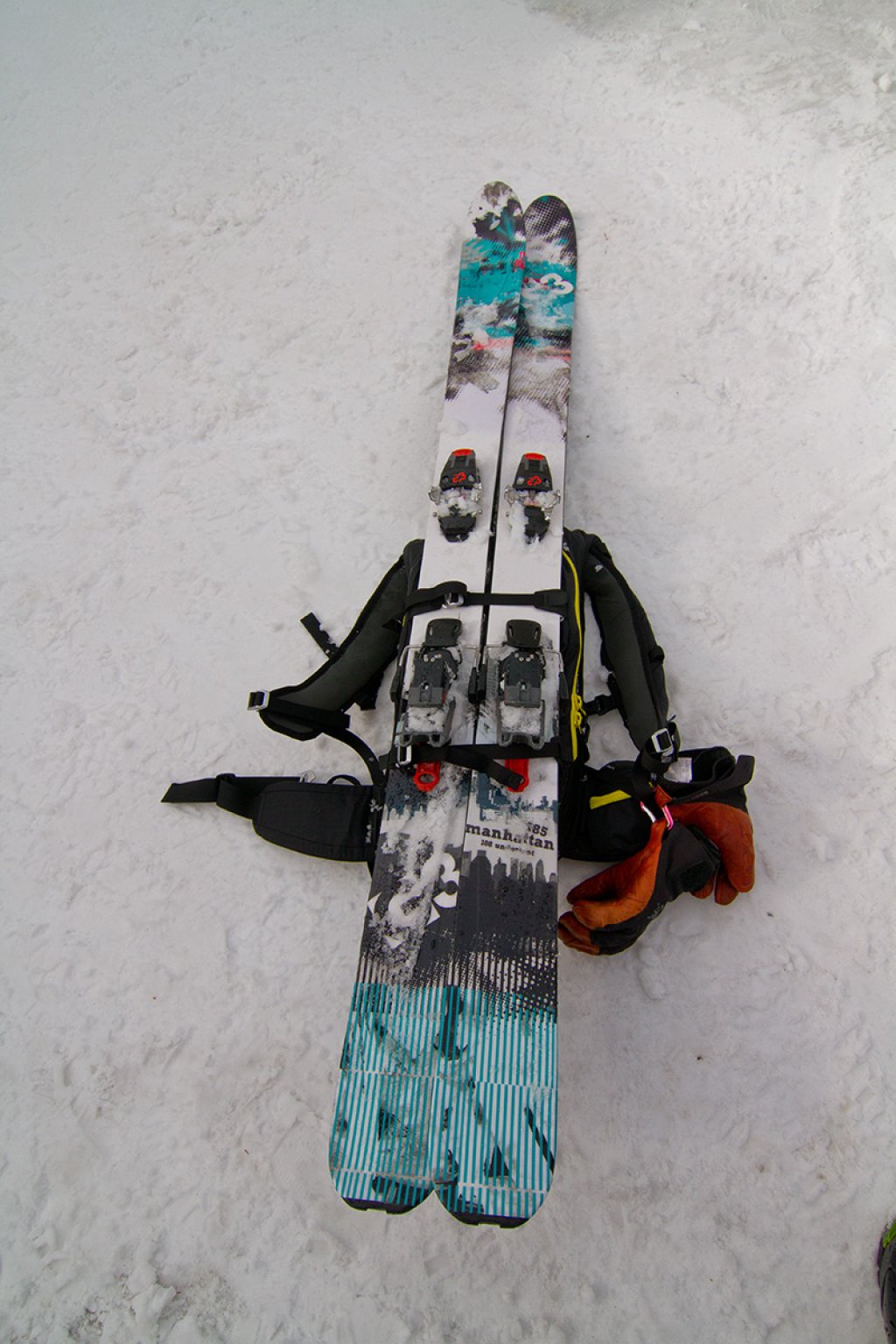 When attached in this way, the backpack hugs my back very well, feels relatively light and gives a really stable feeling. Personally, I don't mind the second point at all; I prefer a backpack to be firm and snug and give a certain stability. But that is of course a matter of taste. When riding, nothing wobbles and the weight of the backpack follows every movement immediately and without delay. Even when packed with skis - unfortunately only flat in front of the backpack or diagonally, but this is not possible with airbag backpacks - nothing wobbles and nothing stands in the way of bootpacking.