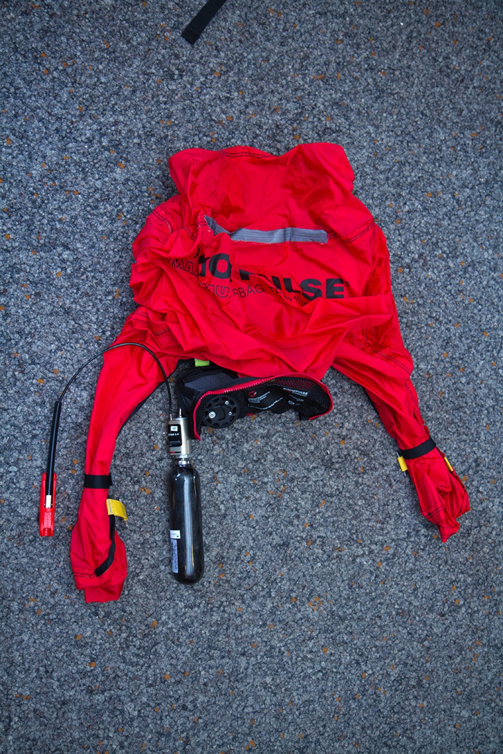 The foldable, T-shaped release handle is easy to reach and can be stowed away if required. However, the latter is slightly fiddly and stiffens the shoulder strap a little in the corresponding area. Unfortunately (or fortunately, of course) I didn't deploy the airbag, but at least I was able to test the removal and installation of the airbag unit. Anyone familiar with the R.A.S. system will know that it's not that complicated. With the P.A.S., however, it doesn't get any easier. At least when it comes to installation. Due to the more complicated airbag shape, there is no longer a compact pocket, but the airbag is inevitably partially unfolded when it is removed. The side arms of the airbag then need to be neatly reassembled and installed. This is not rocket science and thanks to the colored markings on the seams and eyelet hooks you can quickly get an overview, but it is still fiddly. You won't want to do this every day.