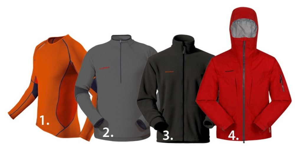 1. Funktionsunterwäsche (Wolle oder Kunstfaser): sorgt für Schweißabtransport und Wärme-Isolation.